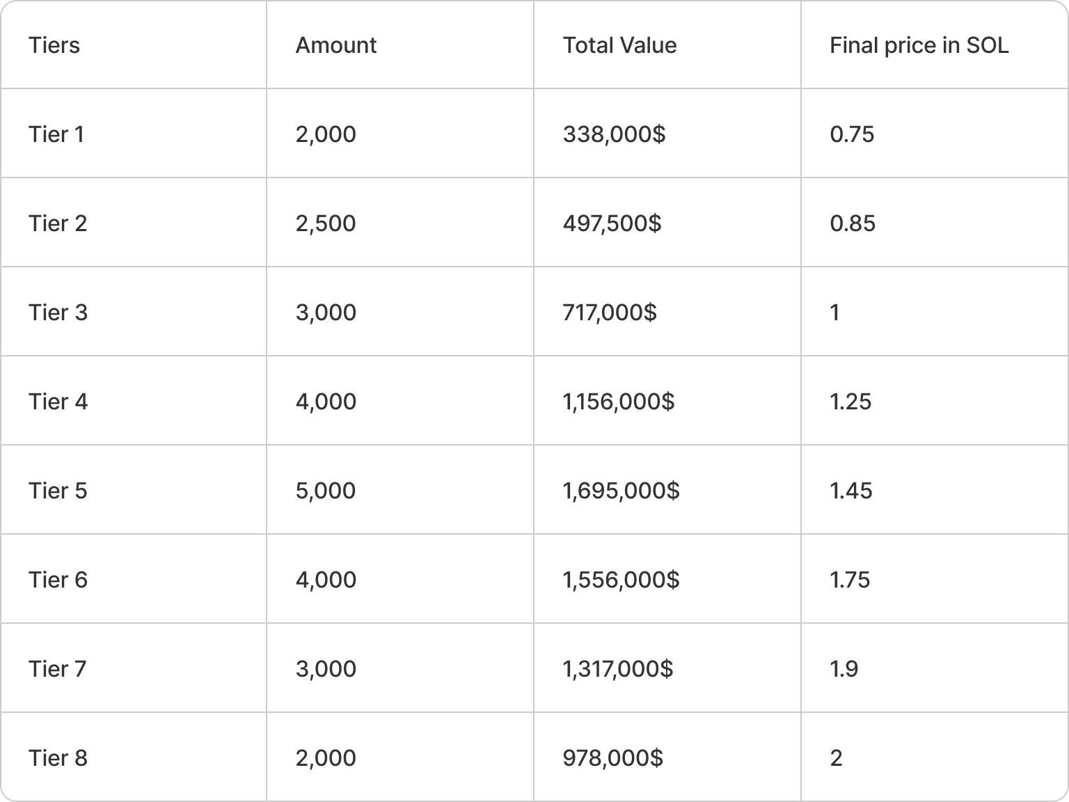 OpenLoop Nodes are offered in 8 unique tiers, each with its own pricing and supply. Early buyers can lock in lower prices, while later tiers are subject to higher rates. The total value of each tier grows as the demand for nodes increases.