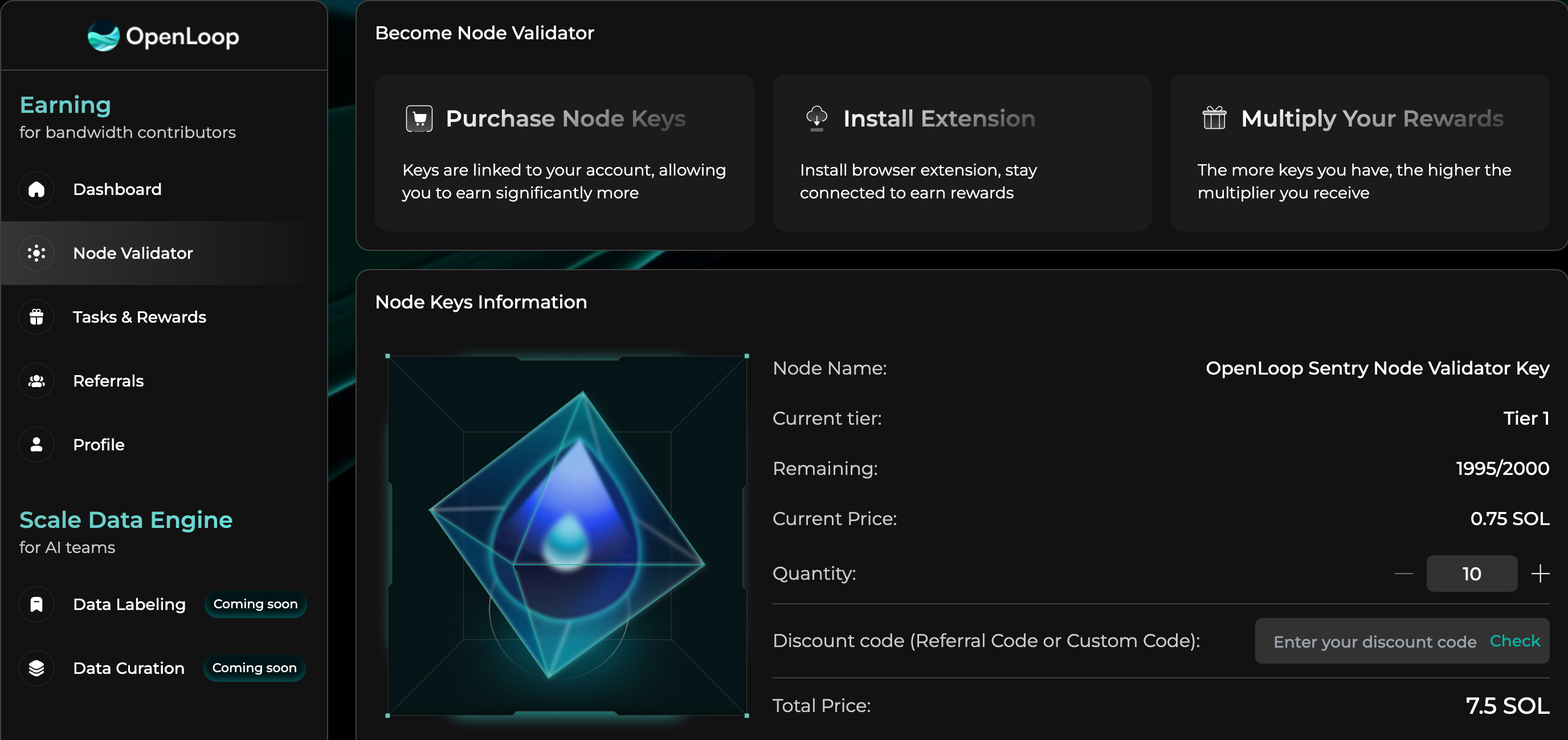 Buy an OpenLoop Node Validators directly from the Dashboard.
